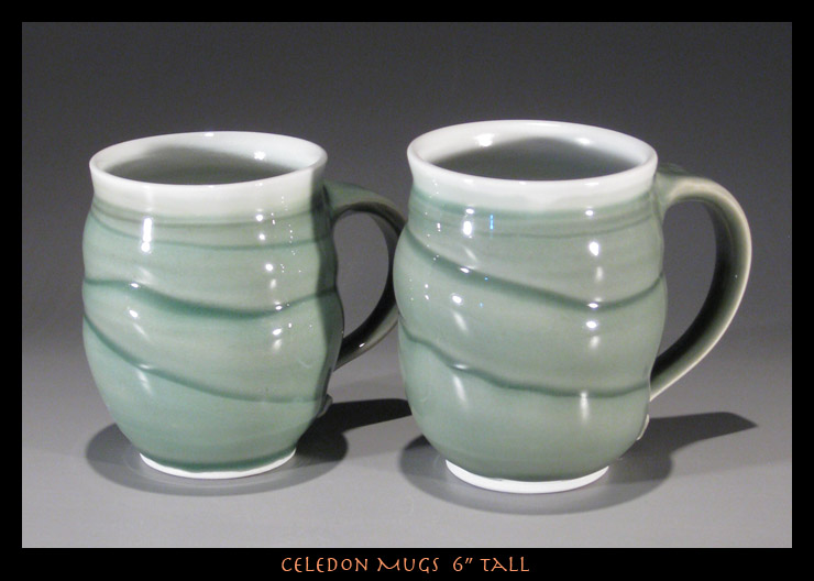 This work has all been fired in a reduction atmosphere to cone 10-11 (2400 F) in a gas fired Kiln. The glazes are made by me in the studio from raw materials.